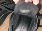 These authentic Prada men's sneakers in size 9 feature a stylish green and black leather design with a lace-up closure. Made in Italy, these sneakers are part of the Prada America's Cup product line and are perfect for casual occasions during the summer, fall, or spring seasons. The leather lining and insole provide comfort and quality, making them a great addition to any man's shoe collection.