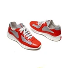 Prada Men’s America’s Cup Mandarino Orange L eather Trainers Sneakers – UK 11 / US 12 Prada America’s Cup sneakers, model Vernice Bike (Art. 4E3400). Crafted in Italy, this vibrant Mandarino Argento colorway pairs glossy orange patent leather with silver mesh panels for a statement-making finish. Known for their sporty silhouette and luxurious materials, these sneakers remain one of Prada’s most recognizable designs. Details: • Brand: Prada • Model: America’s Cup / Vernice Bike • Color: Mandarino Argento (Orange & Silver) • Size: UK 11 / US 12 / EU 45.5 / CM 30 • Made in Italy • Includes: Original box & dust bag Condition: • Pre-owned, overall in very good condition. • Uppers show light creasing consistent with gentle wear. • Small cracks in the patent leather (not surface scratches) visible in certain areas under close inspection — see detailed photos. • Light wear to soles with substantial tread remaining. • Minor marks to midsole. • Interior lining in good condition with slight wear. Measurements (approximate): • Outsole length: 13 in / 33 cm • Outsole width: 4.6 in / 11.7 cm Shipping: • Ships via USPS Priority Mail with tracking and insurance. • International shipping available via eBay’s Global Shipping Program.