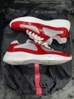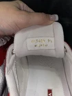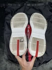 The product is a pair of Prada America's Cup red men's sneakers in size 9.5. These casual shoes feature a solid red color with a round toe shape and lace-up closure. Made with leather lining, mesh fabric type, and leather outsole, these sneakers offer comfort and style for everyday wear. The Prada Americas Cup model is a standard-width shoe with a patent leather upper, making it a fashionable and functional addition to any man's wardrobe, perfect for the spring season.