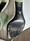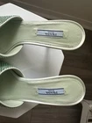 Prada SS 2023 The Prada Aqua Crystal Embellished Open-toe Satin Mules are a stylish and sophisticated choice for a cocktail occasion. These mules exude a chic and elegant look. Crafted in Italy, these shoes are designed for women in US shoe size EU 37, making them a perfect addition to any fashion-forward wardrobe.