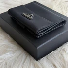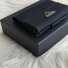 $ 93.8Prada Black Leather Bifold Wallet with Snap Button Compact Design