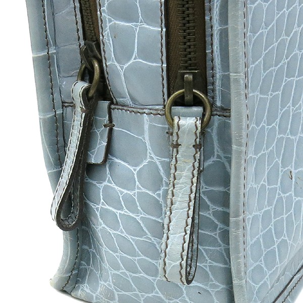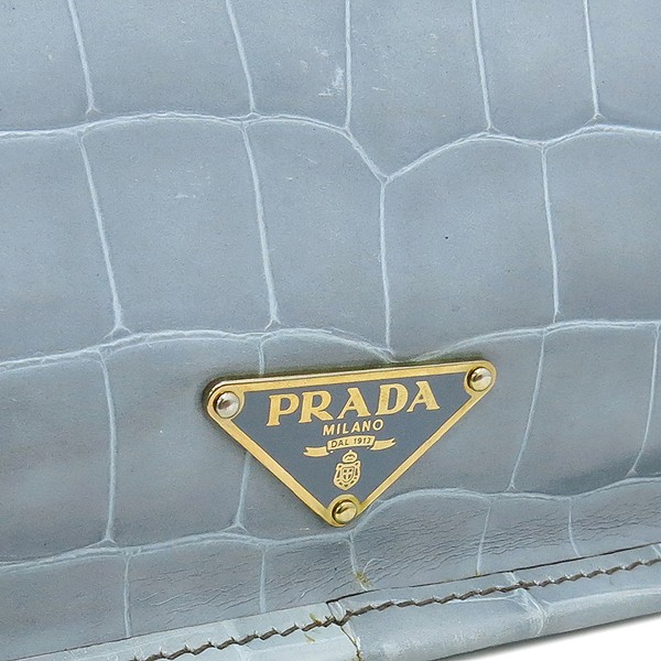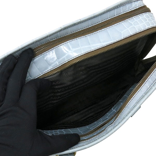 Size: Width 30CM/Height 20CM/Width 10CM/Handle Height 11CM Color: bloo Accessories: Prada (Prada) BN0959 bloo ST.COCCO LUCIDO Crocodile Pattern Tote Bag [Gangnam Main Store]. The market price is 1; 500; 000 won. The material is leather. There is a zipper pocket on the inside. The product has a simple and sophisticated feel. **Due to the nature of second-hand luxury goods, there may be stains not visible in the image. **