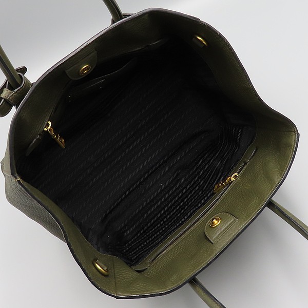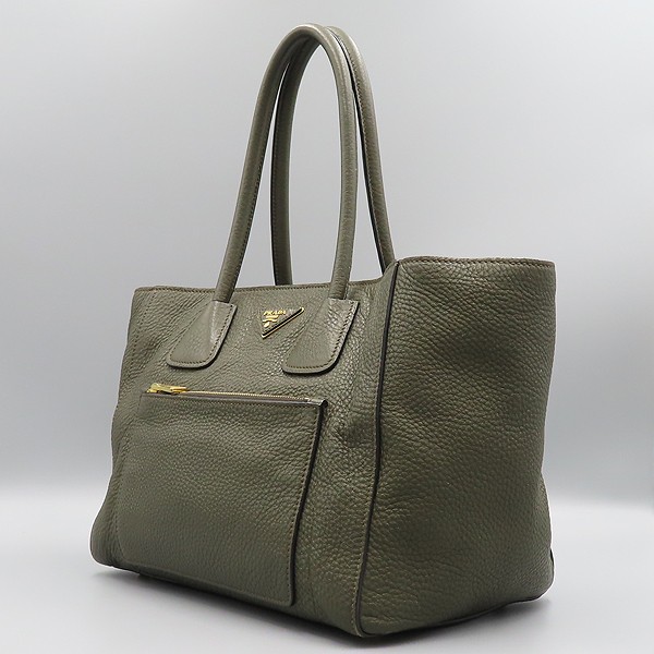 Size: 46 CM top width/ 30 CM bottom width/ 24 cm width/ 18 cm handle height Color: olive accessories: dust/ guarantee card Prada (Prada) BN2795 VIT.DAINO (Vitellodino) military color leather triangle gold logo tote bag [Dongtan Lotte Store]. The material is leather. There are 2 zipper pockets/1 small multi-purpose storage pocket on the inside. [Note when purchasing] This is a lost item with a strap. **Due to the nature of second-hand luxury goods, there may be stains not visible in the image. **