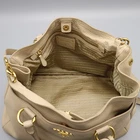 Size: 37 cm width/ 25 cm/ width 19cm/ handle height 15 cm/ strap height ~52 cm Color: Beige accessories: Prada (Prada) BR4393 VIT.DAINO (Vitellodino) NERO beige leather gold logo tote bag + shoulder strap 2WAY [Daegu Dongseong-ro store]. The material is leather. There is a zipper pocket/small multi-use storage pocket on the inside. The strap height is adjustable. The material inside the product is stained, so please refer to the image before purchasing.