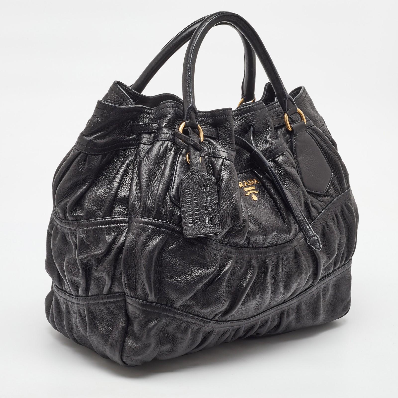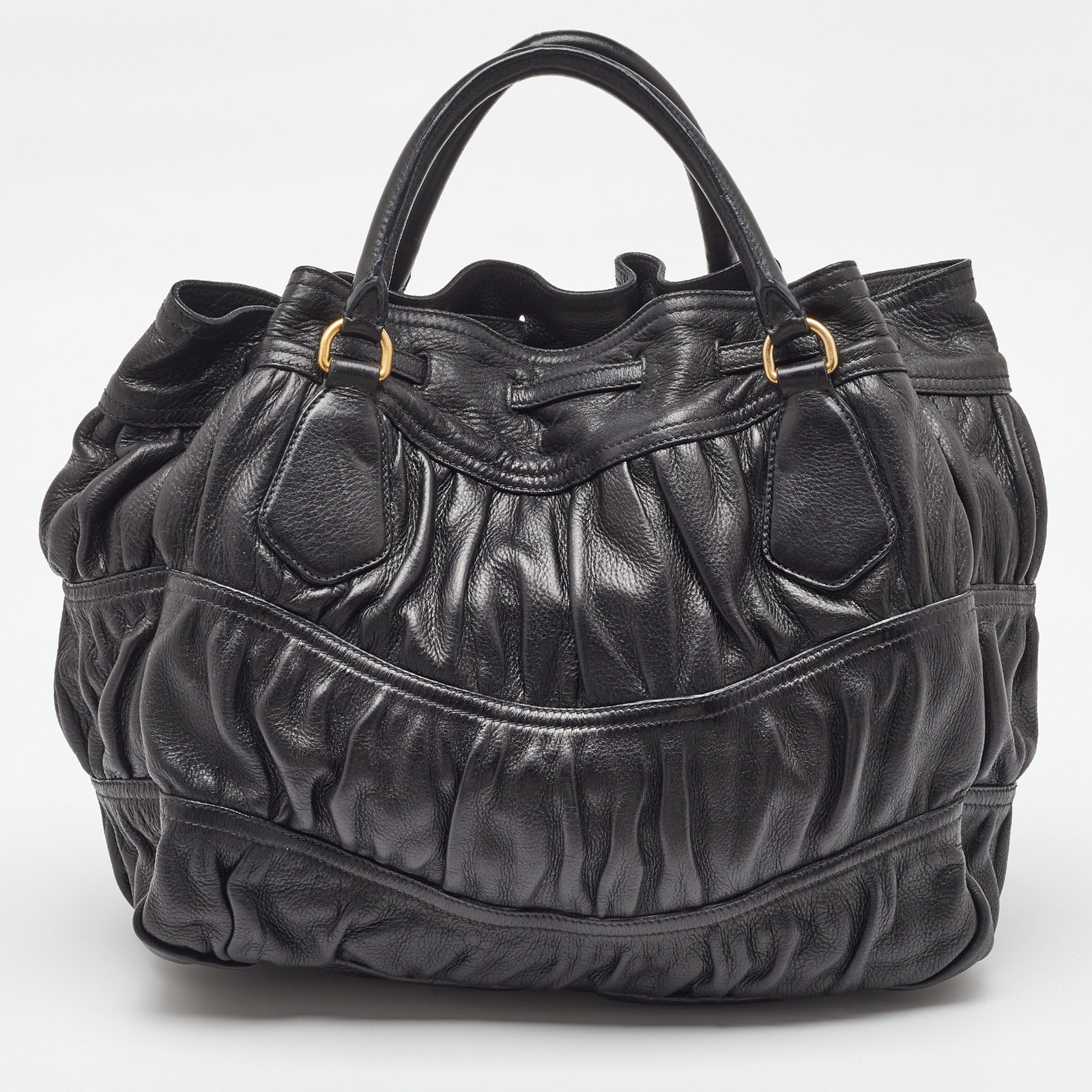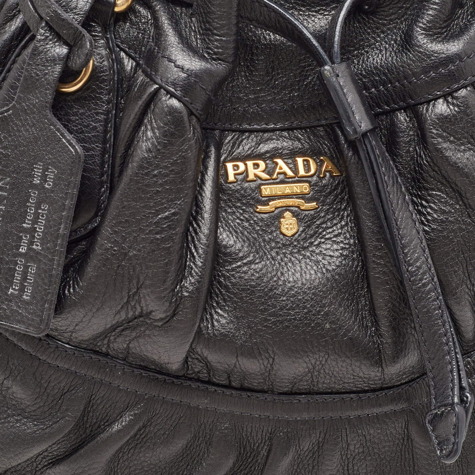 Understated luxury defines this Prada Cervo bag, crafted from supple black deer leather that offers a soft, slouchy silhouette. The drawstring closure and gold tone detailing bring casual sophistication, while the roomy interior provides effortless organization. A timeless everyday option, this piece blends functionality with elevated style.Certified by The Luxury Closet - This item has gone through a detailed authentication process overseen by our experts. We offer a lifetime guarantee of authenticity on all our items. Import duties, taxes and charges are not included in the item price. These charges are the buyers responsibility. Please check with your country’s customs office to determine what these additional cost will be prior to buying. Our eBay Store About Us Contact Us Add to Favorite Sellers Prada Black Leather Cervo Drawstring Bag $457.6 Understated luxury defines this Prada Cervo bag, crafted from supple black deer leather that offers a soft, slouchy silhouette. The drawstring closure and gold tone detailing bring casual sophistication, while the roomy interior provides effortless organization. A timeless everyday option, this piece blends functionality with elevated style. Product Details Brand Color Black Dimensions Material Leather Size Medium Outsole Width Outsole Length Heel Height Includes Certified by The Luxury Closet This item has gone through a detailed authentication process overseen by our experts. We offer a lifetime guarantee of authenticity on all our items. How We Check The in-house team of experts at The Luxury Closet is highly trained to verify the authenticity and the condition of the luxury products. They ensure that only 100% authentic items are put on sale.The evaluation process is unique with its own mix of assessment criteria and differs according to the category. Each item is evaluated based on the following combination of hallmarks, hardware, stitching, symmetry, material, craftsmanship, stamping, codes, hologram stickers, and packaging. Our authenticators also check if the items have been modified or amended (e.g., aftermarket diamonds, replaced batteries, repaired bags, etc.) International Buyers Import duties, taxes and charges are not included in the item price. These charges are the buyers responsibility. Please check with your country’s customs office to determine what these additional cost will be prior to buying.