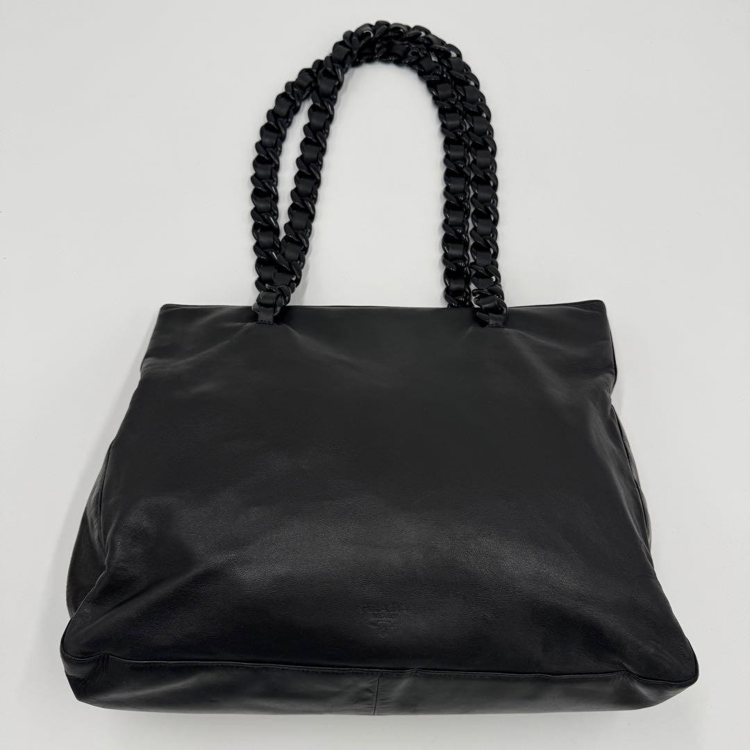 Absolutely love this Prada tote! The leather feels luxurious and the chain strap adds such a chic touch. It's surprisingly roomy for all my essentials and looks professional yet stylish. Perfect for work or a night out!