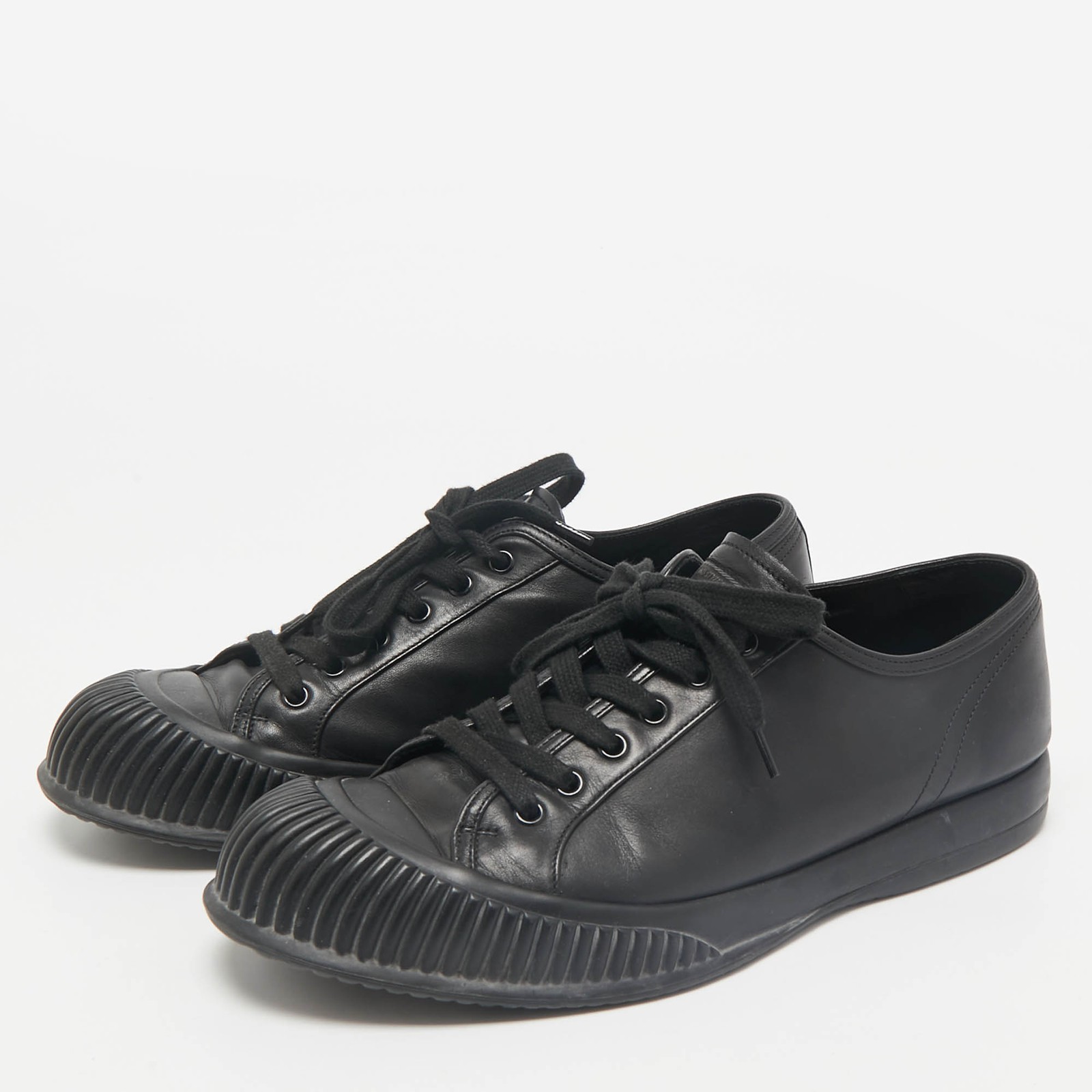 Exuding timeless elegance, these Prada lace up sneakers showcase impeccable craftsmanship with a sleek black leather exterior. Designed for the modern man, their all leather lining and insole ensure ultimate comfort, while the rubber sole provides reliable traction.Certified by The Luxury Closet - This item has gone through a detailed authentication process overseen by our experts. We offer a lifetime guarantee of authenticity on all our items. Import duties, taxes and charges are not included in the item price. These charges are the buyers responsibility. Please check with your country’s customs office to determine what these additional cost will be prior to buying. Our eBay Store About Us Contact Us Add to Favorite Sellers Prada Black Leather Lace Up Sneakers Size 42.5 $268.4 Exuding timeless elegance, these Prada lace up sneakers showcase impeccable craftsmanship with a sleek black leather exterior. Designed for the modern man, their all leather lining and insole ensure ultimate comfort, while the rubber sole provides reliable traction. Product Details Brand Color Black Dimensions Material Leather Size 42.5 Outsole Width Outsole Length Heel Height Includes Certified by The Luxury Closet This item has gone through a detailed authentication process overseen by our experts. We offer a lifetime guarantee of authenticity on all our items. How We Check The in-house team of experts at The Luxury Closet is highly trained to verify the authenticity and the condition of the luxury products. They ensure that only 100% authentic items are put on sale.The evaluation process is unique with its own mix of assessment criteria and differs according to the category. Each item is evaluated based on the following combination of hallmarks, hardware, stitching, symmetry, material, craftsmanship, stamping, codes, hologram stickers, and packaging. Our authenticators also check if the items have been modified or amended (e.g., aftermarket diamonds, replaced batteries, repaired bags, etc.) International Buyers Import duties, taxes and charges are not included in the item price. These charges are the buyers responsibility. Please check with your country’s customs office to determine what these additional cost will be prior to buying.