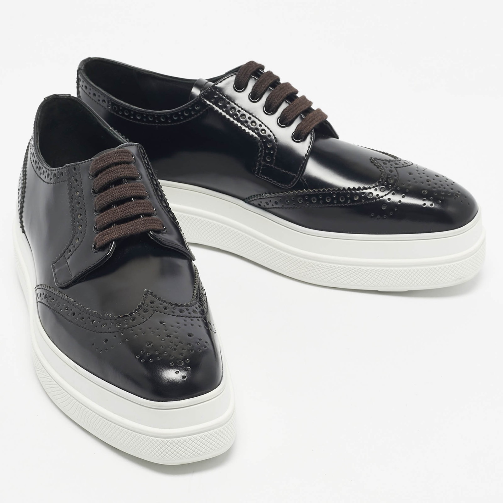 $ 199.59Prada Black White Ombre Brogue Leather Derby Sneakers Size 38