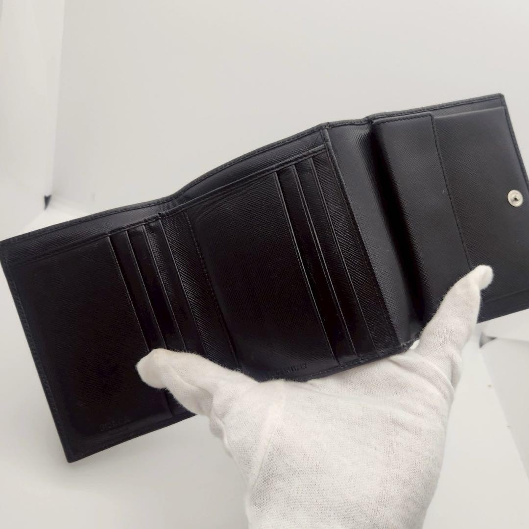 Prada Black Leather Trifold Wallet Triangle Logo Compact Mens Womens Key Features - Brand: Prada - Product Type: Tri-fold wallet / Compact wallet / Mini wallet - Model: Round zipper with triangular logo - Material: Saffiano leather - Color: Black - Size: approximately 10cm (3.9 inches) in height, 11cm (4.3 inches) in width, 1.5cm (0.6 inches) in depth - Condition: Slight signs of use, minimal scratches or stains, cleaned and maintained for immediate use - Note: No accessories are included unless noted in the title or product description. If you have any questions, please ask before purchasing. Specifications Brand Prada Country Japan Color Black Material Leather Accents Logo Pattern Logo Product Description Item Title Prada Trifold Wallet Black Leather Triangle Logo Payment Supports managed payments Please pay within 5 days after auction is finished. About Us We are located in Japan. It's our pleasure to make you happy by proposing our recommend item. If you have any questions or request about items, please feel free to ask us. International Buyers - Please Note: -Import duties, taxes, and charges are not included in the item price or shipping charges. These charges are the buyer's responsibility. -Please check with your country's customs office to determine what these additional costs will be prior to bidding/buying. -These charges are normally collected by the delivering freight (shipping) company or when you pick the item up - do not confuse them for additional shipping charges. -We do not mark merchandise values below value or mark items as - gifts - The US and International government regulations prohibit such behavior. Thank you for your understanding.