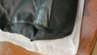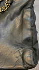 Prada Black Leather And Tessuto Nylon Handbag. NEEDS TLC. Leather Has Wrinkles, Zipper Works But Has Damage, One Shoulder Strap Needs Repair. Three Separate Sections. Zipper Pull Missing. Corners Have Wear.