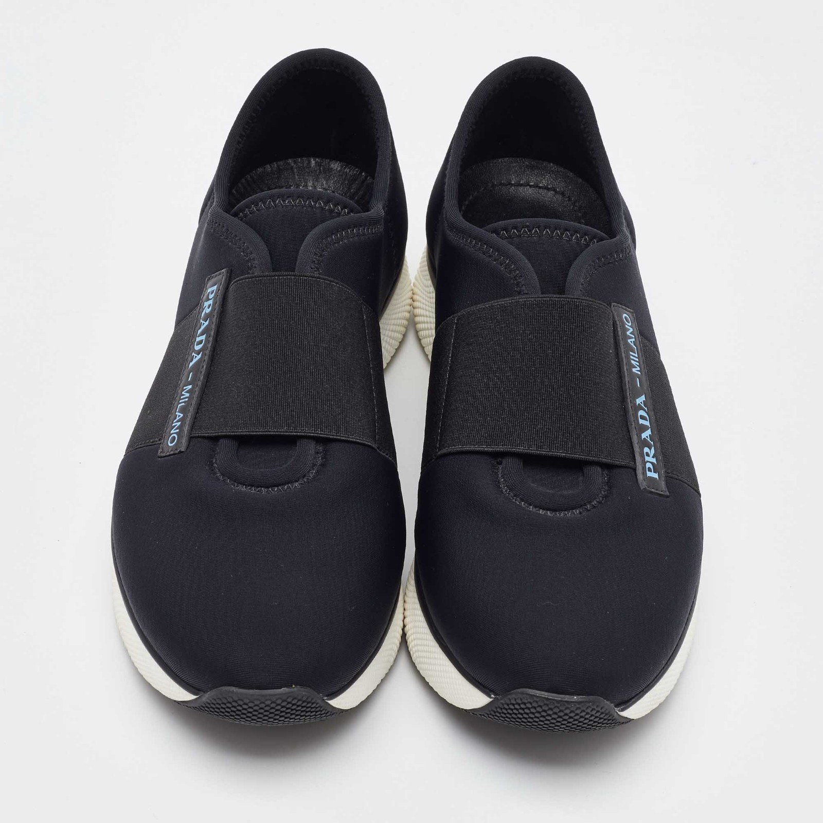 Blending luxury with sporty ease, these Prada slip on sneakers feature a sleek black neoprene upper for a snug, comfortable fit. Their minimalist design is elevated with subtle branding and a flexible sole for all day wear.Certified by The Luxury Closet - This item has gone through a detailed authentication process overseen by our experts. We offer a lifetime guarantee of authenticity on all our items. Import duties, taxes and charges are not included in the item price. These charges are the buyers responsibility. Please check with your country’s customs office to determine what these additional cost will be prior to buying. Our eBay Store About Us Contact Us Add to Favorite Sellers Prada Black Neoprene Slip On Sneakers Size 37.5 $209 Blending luxury with sporty ease, these Prada slip on sneakers feature a sleek black neoprene upper for a snug, comfortable fit. Their minimalist design is elevated with subtle branding and a flexible sole for all day wear. Product Details Brand Color Black Dimensions Material Neoprene Size 37.5 Outsole Width 9 cm Outsole Length 27 cm Heel Height Includes The Luxury Closet Packaging Certified by The Luxury Closet This item has gone through a detailed authentication process overseen by our experts. We offer a lifetime guarantee of authenticity on all our items. How We Check The in-house team of experts at The Luxury Closet is highly trained to verify the authenticity and the condition of the luxury products. They ensure that only 100% authentic items are put on sale.The evaluation process is unique with its own mix of assessment criteria and differs according to the category. Each item is evaluated based on the following combination of hallmarks, hardware, stitching, symmetry, material, craftsmanship, stamping, codes, hologram stickers, and packaging. Our authenticators also check if the items have been modified or amended (e.g., aftermarket diamonds, replaced batteries, repaired bags, etc.) International Buyers Import duties, taxes and charges are not included in the item price. These charges are the buyers responsibility. Please check with your country’s customs office to determine what these additional cost will be prior to buying.