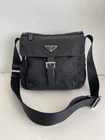 The Prada Crossbody bag in black nylon is a stylish and practical accessory for women. this crossbody bag features a sleek silver hardware color and a comfortable shoulder strap drop ranging from 15.35 to 25.98 inches. With dimensions of approximately 11.0 x 9.05 x 3.54 inches, this bag provides ample space for essentials while offering a fashionable and versatile style for everyday use. The black nylon exterior adds a modern touch to the classic silhouette of the crossbody bag.