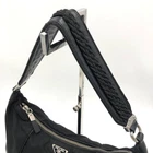Absolutely love this Prada hobo! The sleek black nylon with leather accents looks so chic, and the triangle logo adds that perfect high-end touch. Lightweight yet spacious enough for daily essentials, and the shoulder strap is super comfortable. The half-moon shape gives it a unique, elegant vibe that stands out. Perfect for both casual outings and dressier events. The quality is impeccable—true Prada craftsmanship. A must-have for any fashion lover!