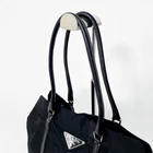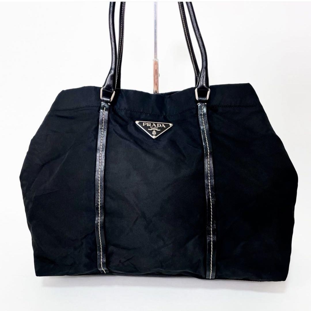 Prada Tote Bag Big Logo Triangle Nylon Leather Black Used Key Features - Brand: PRADA - Product: Tote Bag / Handbag - Model: Triangular Logo Nylon Leather Tote - Features: Stylish black nylon and leather tote bag, lightweight yet spacious, ideal for commuting, school, or travel. Interior includes a zippered pocket for organization. PRADA white tag with triangular logo accents. - Size: approximately 11" (28cm) high x 13.4" (34cm) wide x 5.9" (15cm) deep; handle length about 19.7" (50cm) - Material: Nylon and leather - Condition: Used with some signs of wear, such as minor scratches, light dirt, and slight stickiness. No major tears or damage. Still in good condition for continued use. - No accessories are included unless noted in the title or product description. If you have any questions, please ask before purchasing. - Authenticity: Purchased from a certified brand auction, verified authentic. We hold a Specifications Brand Prada Country Japan Exterior Material Leather Style Tote Bag Exterior Color Black Pattern Logo Accents Logo Color Black Product Description Item Title Prada Tote Bag Big Logo Triangle Nylon Black Payment Supports managed payments Please pay within 5 days after auction is finished. About Us We are located in Japan. It's our pleasure to make you happy by proposing our recommend item. If you have any questions or request about items, please feel free to ask us. International Buyers - Please Note: -Import duties, taxes, and charges are not included in the item price or shipping charges. These charges are the buyer's responsibility. -Please check with your country's customs office to determine what these additional costs will be prior to bidding/buying. -These charges are normally collected by the delivering freight (shipping) company or when you pick the item up - do not confuse them for additional shipping charges. -We do not mark merchandise values below value or mark items as - gifts - The US and International government regulations prohibit such behavior. Thank you for your understanding.