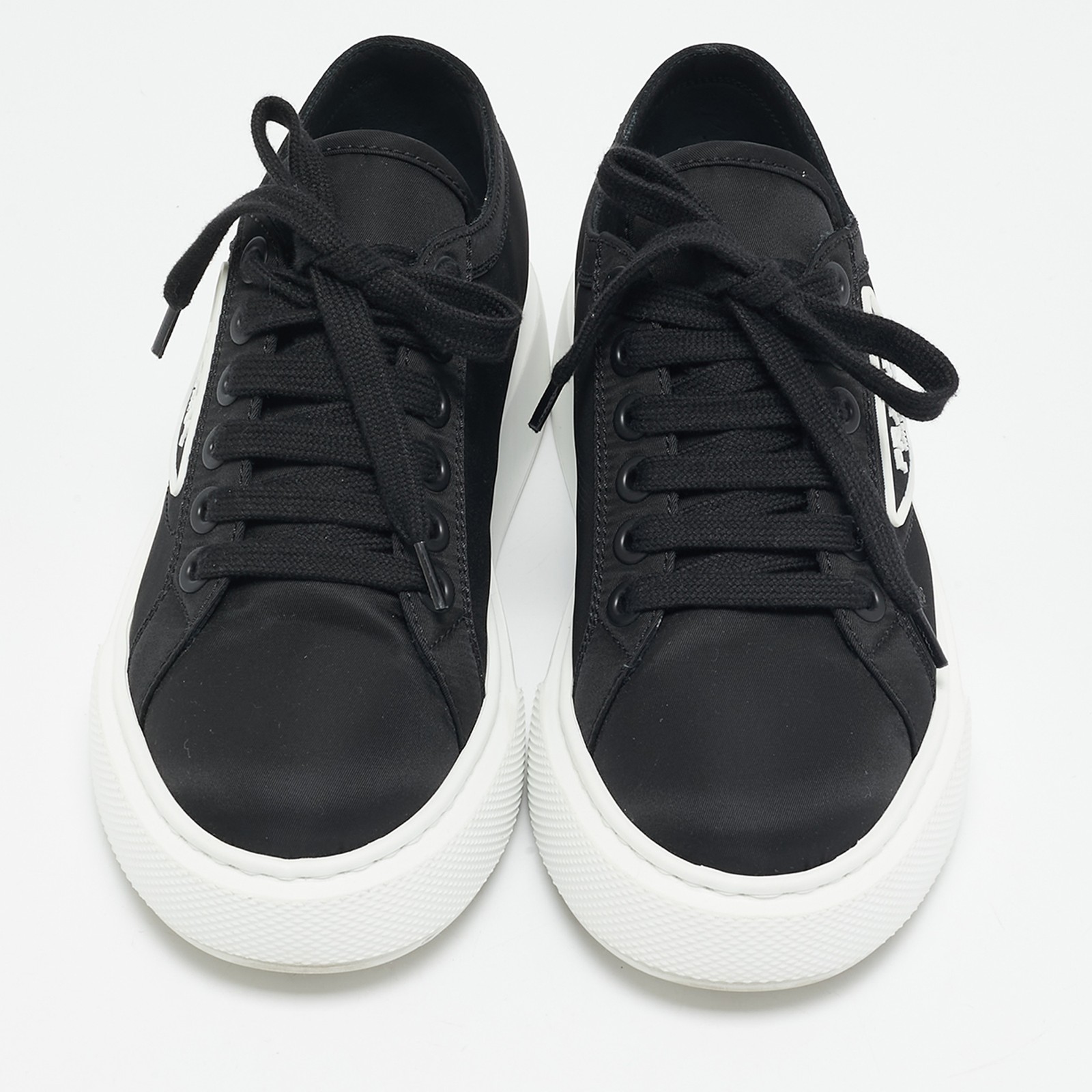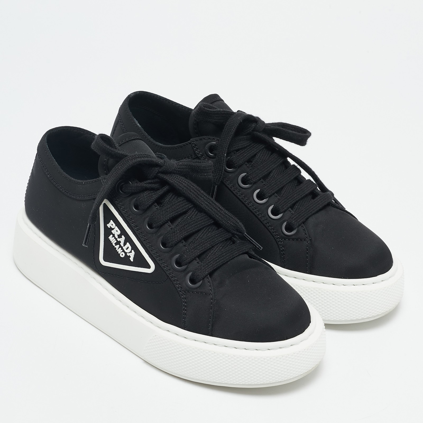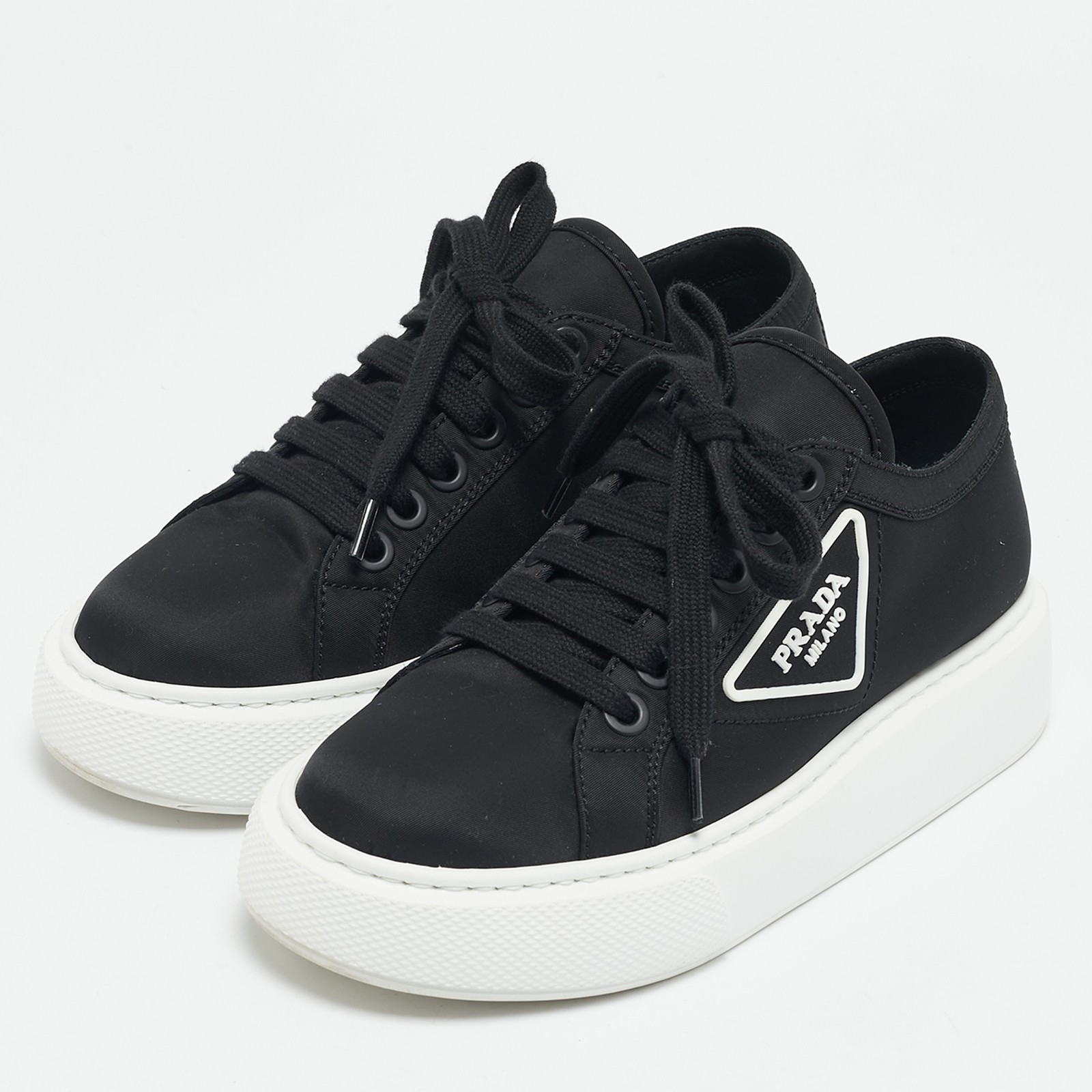 Crafted from durable black nylon, Prada’s Wheel Cassetta sneakers merge sporty style with elevated utility. The low top design and tonal details create a streamlined look ideal for everyday wear. Match with cargo pants or a sleek co ord for casual cool.Certified by The Luxury Closet - This item has gone through a detailed authentication process overseen by our experts. We offer a lifetime guarantee of authenticity on all our items. Import duties, taxes and charges are not included in the item price. These charges are the buyers responsibility. Please check with your country’s customs office to determine what these additional cost will be prior to buying. Our eBay Store About Us Contact Us Add to Favorite Sellers Prada Black Nylon Wheel Cassetta Low-Top Sneakers Size 36 $399.3 Crafted from durable black nylon, Prada’s Wheel Cassetta sneakers merge sporty style with elevated utility. The low top design and tonal details create a streamlined look ideal for everyday wear. Match with cargo pants or a sleek co ord for casual cool. Product Details Brand Color Black Dimensions Material Nylon Size 36 Outsole Width Outsole Length Heel Height Includes Certified by The Luxury Closet This item has gone through a detailed authentication process overseen by our experts. We offer a lifetime guarantee of authenticity on all our items. How We Check The in-house team of experts at The Luxury Closet is highly trained to verify the authenticity and the condition of the luxury products. They ensure that only 100% authentic items are put on sale.The evaluation process is unique with its own mix of assessment criteria and differs according to the category. Each item is evaluated based on the following combination of hallmarks, hardware, stitching, symmetry, material, craftsmanship, stamping, codes, hologram stickers, and packaging. Our authenticators also check if the items have been modified or amended (e.g., aftermarket diamonds, replaced batteries, repaired bags, etc.) International Buyers Import duties, taxes and charges are not included in the item price. These charges are the buyers responsibility. Please check with your country’s customs office to determine what these additional cost will be prior to buying.