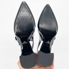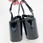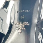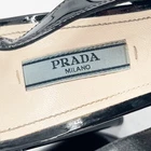Prada Black Patent Leather Pointed Toe Mary Jane Strap Slingback Heel Women's size: IT 40 Shoe sizing is inconsistent across brands. It is recommended to know your sizing within a brand, or refer to the brand's website to determine fit. Elegant with a touch of retro charm, these Prada slingback heels are crafted in glossy black patent leather and feature a sharply pointed toe for a sleek silhouette. A Mary Jane strap with adjustable buckle adds a delicate accent across the vamp, while the slingback strap and block heel provide structure and stability. A polished style with vintage-inspired femininity. 3.75" heel Preowned condition. Wear of outsoles. Minor creasing and scuffing of leather upper. Overall good condition. Keywords: mod, evening wear, structured elegance, cocktail party, glossy finish, retro revival, sleek lines, transitional style, Italian classic, formal events, basic, neutral, work, career, office, professional, party cocktail