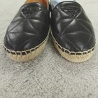Prada Espadrille Shoes Womens 39 9 US Black Leather Logo Quilted Matelasse Flats. Original MSRP of $825. Excellent, like new, condition, minimal to no wear is noted on the insoles or outsoles as pictured, one very minor scuff is noted on the front toe area as pictured, one minor spot of slight discoloration is noted on one inside back heel as pictured, comes with the original box, some signs of wear to the box are noted as pictured, no stains, tears, or other signs of wear noted, please review all photos. If we missed something, don't worry, we offer free returns. Just indicate, "just didn't like it," for any reason, and we'll pay for the return. Thanks for visiting!