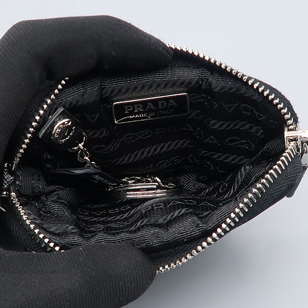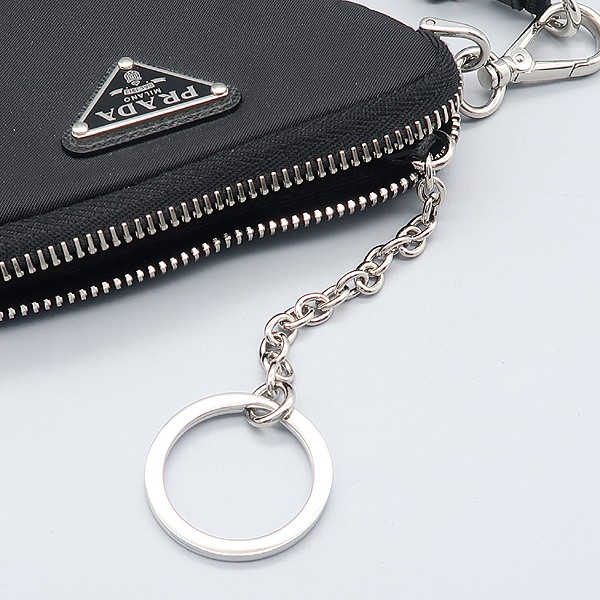 Size: 12 cm width/ 8 cm/ width 2 cm Color: Black Accessories: Prada (Prada) 2TT140 black renylon triangle mini key holder pouch+ strap [Suwon Gwanggyo Branch]. The store price is 810; 000 won. The material is nylon. This padded mini pouch with a compact design is made of innovative nylon produced from recycled nylon spun obtained by purifying plastic collected from the ocean; fishing nets; and textile fibers. It's zippered; it features an adjustable neck strap and an enameled metal triangle logo. Product Code: 2TT140_2DMI_F0002 Padded Zip Closure Enamel Metal Triangle Logo Detachable Adjustable Nylon Neck Strap Manufacturer Name: Prada SpA Importer Name: (U) Prada Korea This product requires special care. Please refer to the FAQ for the management method. The quality guarantee period is 1 year. Please refer to our Terms and Conditions for more details. Country of Origin Information Height: 12 cm Width: 8 cm