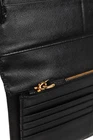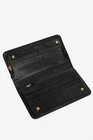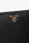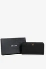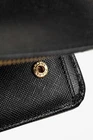 Crafted from luxurious black Saffiano leather with gold-tone hardware, this Prada wallet is both stylish and functional. The snap closure opens to reveal multiple zippered compartments, card slots, and a slip compartment, providing organization for all your essentials. The iconic gold logo at the front adds a touch of sophistication. Condition: Excellent; some marking minor mark on outside; light rubbing at edges and minor discolouration of gold hardware; includes certificate of authenticity, dustbag, and box Approximate measurements: Height: 4.7" (12 cm) Width: 8.7" (22 cm) Depth: 0.9" (2.3 cm) Composition: leather, metal