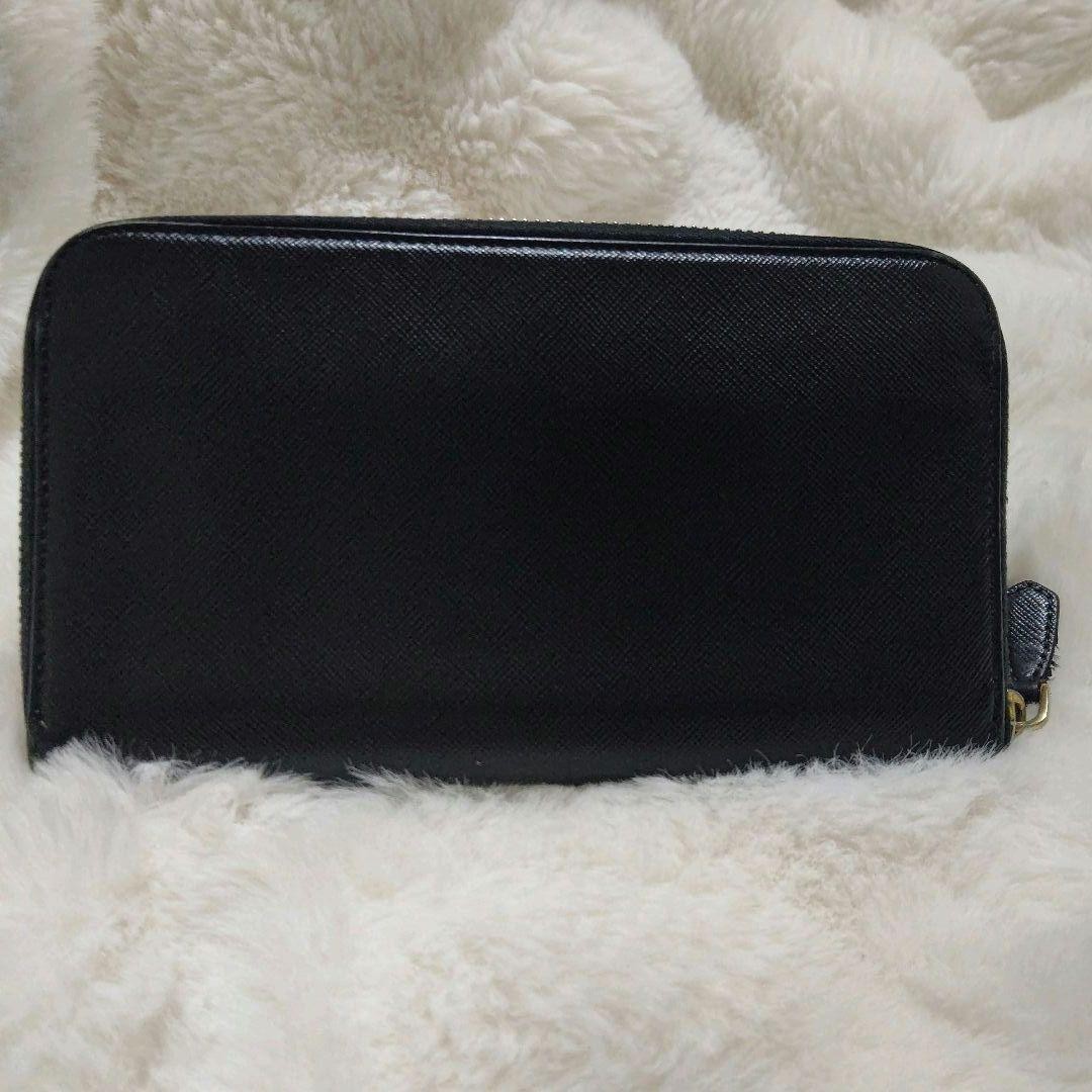 Prada Black Saffiano Leather Round Zipper Long Wallet