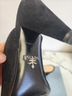 Elevate your style with these stunning Prada black suede pumps. Designed with a classic pump style, these shoes are perfect for any occasion. Crafted in Italy, they feature a comfortable heel that adds a touch of elegance to your outfit. The shoes are made of high-quality suede material that is both durable and stylish. These Prada pumps are a must-have for any fashion-forward woman. They are perfect for pairing with your favorite dress or skirt to create a chic and sophisticated look. With their sleek design and comfortable fit, these shoes are sure to become your go-to for any special occasion.