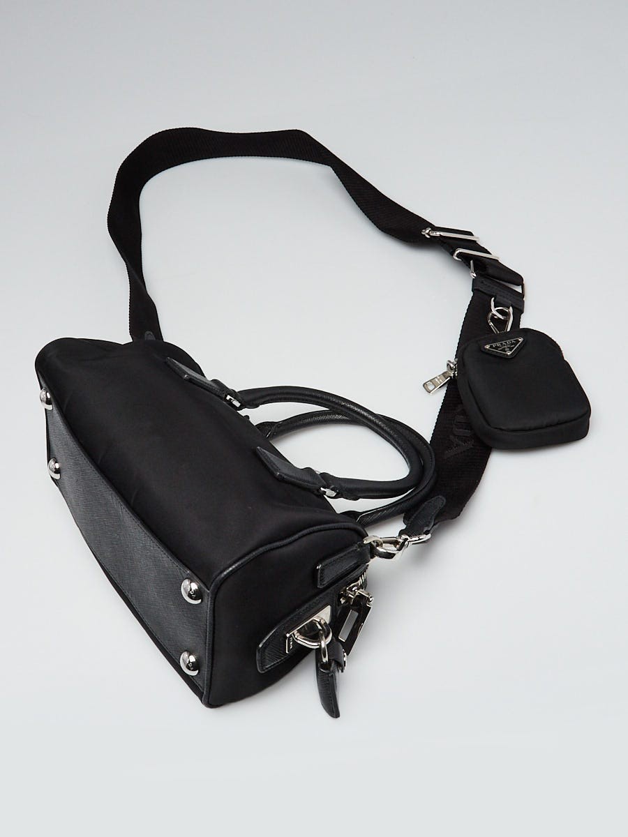 Prada Black Tessuto Nylon and Leather Small Top Handle Crossbody Bag 1BB846 Description Get nostalgic with this throwback style bag from Prada. This chic bag is practical and feminine with a nylon body and Saffiano leather trim. It comes with a removable strap and cute removable pouch. You will love this cute little bag from Prada! Original retail price was $1750. Condition The exterior is clean throughout with some rubbing at the bottom corners. The hardware is bright and shiny. The interior has a mark on the lining but overall the bag is clean and in excellent condition. Details Overall Condition: Gently used Exterior Condition: Gently used Interior Condition: Gently used Includes: Dust bag, padlock, clochette, two keys, removable strap and removable coin pouch Material: Black nylon and leather trim Handles: Double rolled leather top handles and a removable nylon strap Closure/Opening: Single zip closure Interior Lining: Fine Prada logo jacquard textile lining Interior Pockets: One zip pocket Hardware: Silvertone Origin: Italy Production Year: Handle Drop: 3" and 18"-adjustable Measurements: 8" L x 4.5" W x 4.25" H Date/Authenticity Code: N/A Guaranteed Authentic Only 100% authentic bags earn the tag! We guarantee the authenticity of every item we sell or 100% of your money back including original and return shipping costs. We're experts in distinguishing the "wanna-bes" from the "real deal." Whether it's a handbag or necklace, determining the authenticity of an item is a mix of art and science. Items such as stampings, symmetry, stitching, hardware, authenticity stamps, as well as overall workmanship and materials are inspected and determined to be consistent with the manufacturer's established standards of quality. If applicable, manufacturer date codes and serial numbers are verified for consistency. Lastly, the item is compared to on-hand authentic reference items. Payment We accept Paypal along with Visa, Mastercard, American Express, and Discover. We request full payment immediately upon purchase. Hassle-free Return Policy We guarantee the authenticity and condition of each item we sell. If you are not completely satisfied with your purchase, you may return it within 15 days of shipping date for a prompt refund. Hassle-free returns means that you don't have to contact us prior to returning an item. All we ask is that you do not remove the Authenticity Seal attached to your item and that you return the item in the condition you received it. We also ask that all original papers and box are returned. We cannot accept return items that do not meet this criteria. To return your order for a refund, please initiate the return within your eBay account. Within 2-3 business days upon receipt, you will be issued a refund for the original sales price and any taxes in the same form as the original payment method. Please note that this credit will not include any original shipping charges. Shipping Fees Our goal is to process your order quickly and ensure its safe delivery. We offer free shipping for all domestic orders and flat rate shipping fees for expedited and international orders regardless of how many items are in your order. Please note that we cannot ship to P.O. boxes. Shipping Method Fee per Order Standard (UPS Ground) FREE Expedited (UPS 2 Day) $15 APO/FPO, Alaska, and Hawaii (USPS Priority Insured) FREE Canada (USPS Priority Insured) $15 International (USPS Priority Insured) $15 International (USPS Express Insured) $25 About Us We know that shopping for new luxury goods at high-end retailers can be a luxurious and satisfying experience. We strive to deliver the same high quality experience and level of service for pre-owned goods. Never considered giving a pre-owned luxury item as a gift? Every order is presented and packaged to standards that match or exceed luxury retail stores and therefore make great gifts (especially if it's a gift for yourself!). For every order, take a look at what comes in the box: Professionally cleaned and rejuvenated luxury item with "Guaranteed Authentic by Yoogi's Closet" hang tag and seal. "Guaranteed Authentic by Yoogi's Closet" enclosure card. Care instructions and message from Yoogi. Invoice and return instructions. Original box, dustbag, and enclosed materials* * Note that select pre-owned merchandise will arrive with these items. Please refer to the product description page on the Yoogi's Closet website for details. Have Authentic Luxury Handbags or Jewelry to Sell? If you are having problems selling your authentic luxury handbag on eBay, we can help! We pay top dollar for quality, gently used luxury handbags. Learn more about our selling and consignment services.