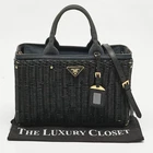 Our eBay Store About Us Contact Us Add to Favorite Sellers Prada Black Wicker and Canvas Large Midollino Tote The Prada Midollino tote is a refined fusion of natural texture and minimalist design. Featuring black woven wicker paired with sleek canvas panels, this large tote channels effortless summer sophistication. Finished with a logo plaque on the front, it’s perfect for vacation getaways or city strolls. Product Details Brand Prada Includes The Luxury Closet Packaging, Detachable Strap Certified by The Luxury Closet This item has gone through a detailed authentication process overseen by our experts. We offer a lifetime guarantee of authenticity on all our items. How We Check The in-house team of experts at The Luxury Closet is highly trained to verify the authenticity and the condition of the luxury products. They ensure that only 100% authentic items are put on sale.The evaluation process is unique with its own mix of assessment criteria and differs according to the category. Each item is evaluated based on the following combination of hallmarks, hardware, stitching, symmetry, material, craftsmanship, stamping, codes, hologram stickers, and packaging. Our authenticators also check if the items have been modified or amended (e.g., aftermarket diamonds, replaced batteries, repaired bags, etc.) Please note that this handbag may have a perfume scent, as it was stored and packaged in Dubai where such fragrances are commonly used. International Buyers Import duties, taxes and charges are not included in the item price. These charges are the buyers responsibility. Please check with your country’s customs office to determine what these additional cost will be prior to buying.