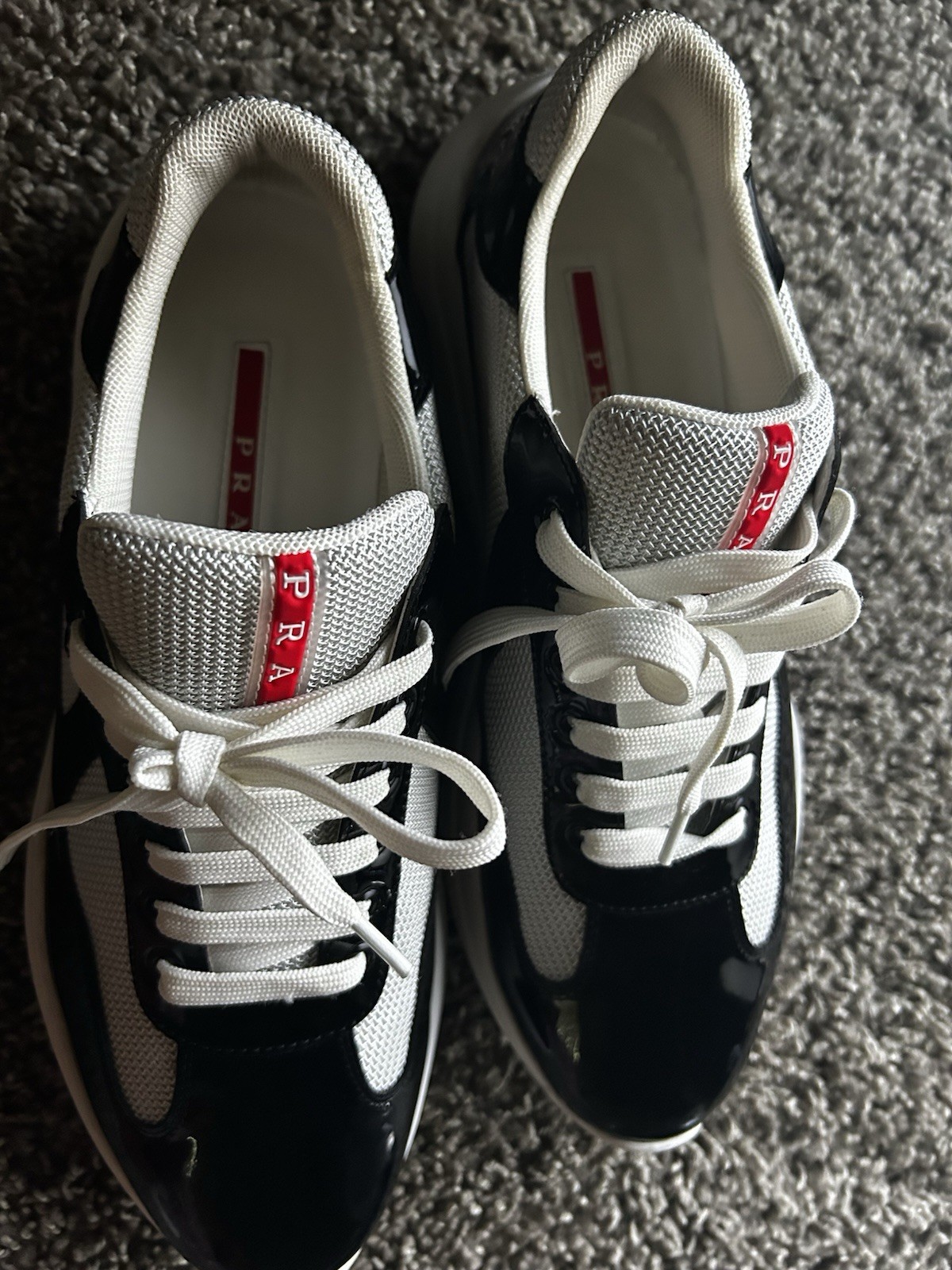 These sneakers are a total game-changer! The sleek patent leather gives them a high-end look, and the America's Cup design adds a sporty yet classy touch. They fit true to size, feel super comfortable, and elevate any casual outfit instantly. The black color is versatile, and the free shipping is a nice bonus. Definitely worth it for the quality and style—Prada never disappoints!