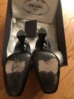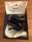 Prada Blue Satin Calzature Twill Rosoni High Heel Shoes Unique curved heel, approximately 4.0" Great overall condition, shows wear on soles Comes with original box and dust bag