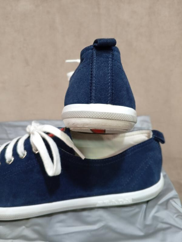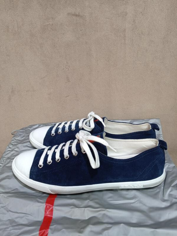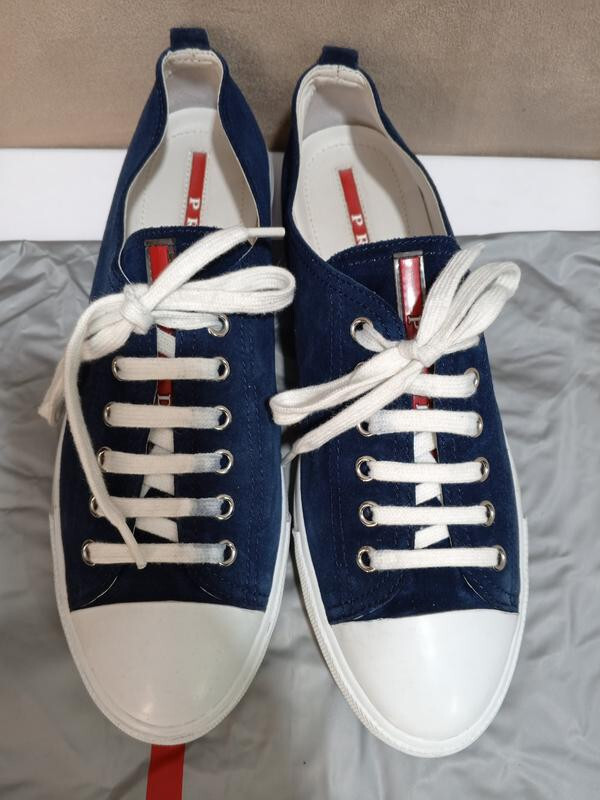 Prada Suede Leather Sneakers Cap Toe Blue Size 40 (26) Good condition