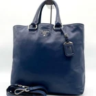 PRADA BN1713 2way tote bag, handbag, shoulder bag in blue. It features silver hardware and a logo. The condition is extremely good with no noticeable scratches or dirt, allowing for comfortable future use. The size is approximately 12.60 inches in height, 13.39 to 15.75 inches in width, and 5.91 inches in depth. The shoulder strap measures 39.37 to 43.31 inches. The material is leather. The interior has one zipper pocket, one open pocket, and one snap button pocket. I promise fast shipping via FedEx or DHL as soon as possible! Import duties, taxes and charges are not included in the item price or shipping charges. These charges are the buyer’s responsibility. These charges are normally collected by the delivering freight (shipping) company or when you pick the item up - do not confuse them for additional shipping charges.