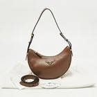 Effortlessly sculptural, Prada’s Arqué Hobo in rich brown leather balances minimalist design with everyday luxury. The curved, compact silhouette and smooth finish lend a quiet sophistication—ideal for those who favor elegance in simplicity.Certified by The Luxury Closet - This item has gone through a detailed authentication process overseen by our experts. We offer a lifetime guarantee of authenticity on all our items. Import duties, taxes and charges are not included in the item price. These charges are the buyers responsibility. Please check with your country’s customs office to determine what these additional cost will be prior to buying. Our eBay Store About Us Contact Us Add to Favorite Sellers Prada Brown Leather Arque Hobo $1688.5 Effortlessly sculptural, Prada’s Arqué Hobo in rich brown leather balances minimalist design with everyday luxury. The curved, compact silhouette and smooth finish lend a quiet sophistication—ideal for those who favor elegance in simplicity. Product Details Brand Color Brown Dimensions Material Leather Size Outsole Width Outsole Length Heel Height Includes Certified by The Luxury Closet This item has gone through a detailed authentication process overseen by our experts. We offer a lifetime guarantee of authenticity on all our items. How We Check The in-house team of experts at The Luxury Closet is highly trained to verify the authenticity and the condition of the luxury products. They ensure that only 100% authentic items are put on sale.The evaluation process is unique with its own mix of assessment criteria and differs according to the category. Each item is evaluated based on the following combination of hallmarks, hardware, stitching, symmetry, material, craftsmanship, stamping, codes, hologram stickers, and packaging. Our authenticators also check if the items have been modified or amended (e.g., aftermarket diamonds, replaced batteries, repaired bags, etc.) International Buyers Import duties, taxes and charges are not included in the item price. These charges are the buyers responsibility. Please check with your country’s customs office to determine what these additional cost will be prior to buying.