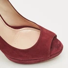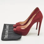 Make a chic style statement with these designer pumps. They showcase sturdy heels and durable soles, perfect for your fashionable outingsCertified by The Luxury Closet - This item has gone through a detailed authentication process overseen by our experts. We offer a lifetime guarantee of authenticity on all our items. Import duties, taxes and charges are not included in the item price. These charges are the buyers responsibility. Please check with your country’s customs office to determine what these additional cost will be prior to buying. Our eBay Store About Us Contact Us Add to Favorite Sellers Prada Burgundy Suede Peep Toe Pumps Size 38 $178.2 Make a chic style statement with these designer pumps. They showcase sturdy heels and durable soles, perfect for your fashionable outings Product Details Brand Color Burgundy Dimensions Material Suede Size 38 Outsole Width Outsole Length Heel Height Includes Certified by The Luxury Closet This item has gone through a detailed authentication process overseen by our experts. We offer a lifetime guarantee of authenticity on all our items. How We Check The in-house team of experts at The Luxury Closet is highly trained to verify the authenticity and the condition of the luxury products. They ensure that only 100% authentic items are put on sale.The evaluation process is unique with its own mix of assessment criteria and differs according to the category. Each item is evaluated based on the following combination of hallmarks, hardware, stitching, symmetry, material, craftsmanship, stamping, codes, hologram stickers, and packaging. Our authenticators also check if the items have been modified or amended (e.g., aftermarket diamonds, replaced batteries, repaired bags, etc.) International Buyers Import duties, taxes and charges are not included in the item price. These charges are the buyers responsibility. Please check with your country’s customs office to determine what these additional cost will be prior to buying.