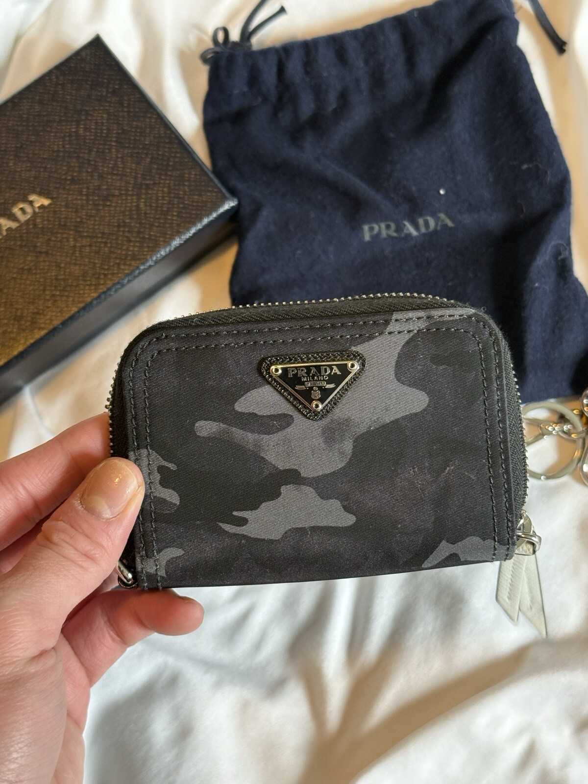Prada Camo Tessuto Wallet With Strap - Nylon/Saffiano Leather - Like New In Box 100% authentic, purchased from Prada store. Comes with wallet, strap, original box and dust bag and authenticity card. Used once. Style: 2MM359 Tessuto Patch - Blue Camouflage - Portamonete