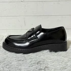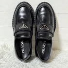 These Prada loafers are absolutely stunning—the rich chocolate and black color combo is so versatile, and the iconic triangle logo adds a luxe touch. Even though they're pre-owned, they look brand new with no visible wear. Super comfortable and true to size—perfect for elevating any outfit! A total steal for such high quality. Love them!