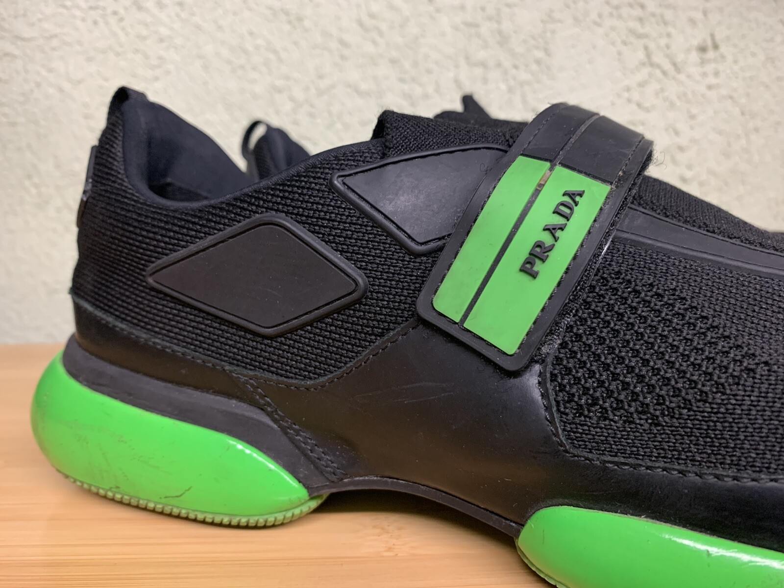 PRADA Cloudbust logo rubber strapped low top sneakers Black and lime green Sz 10.