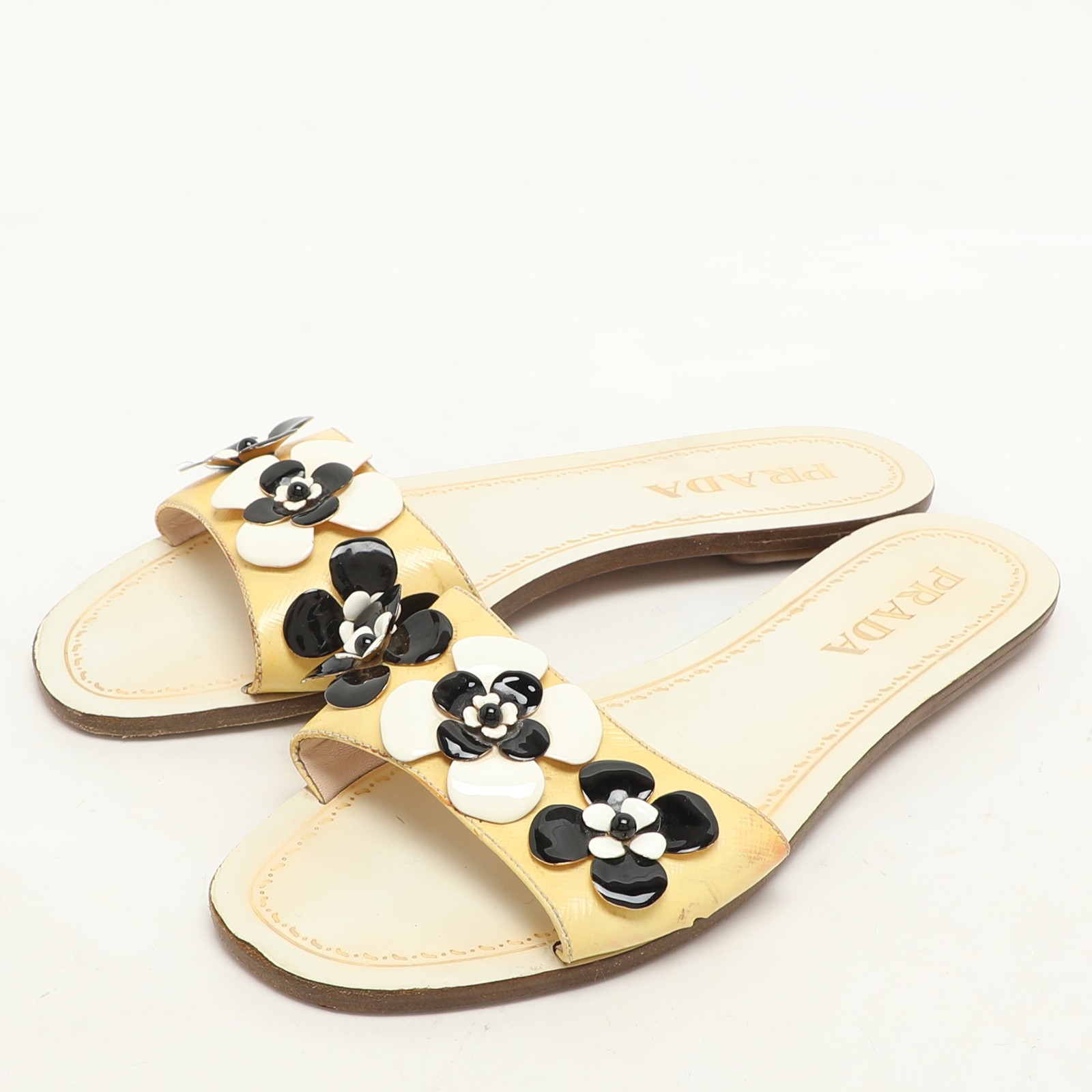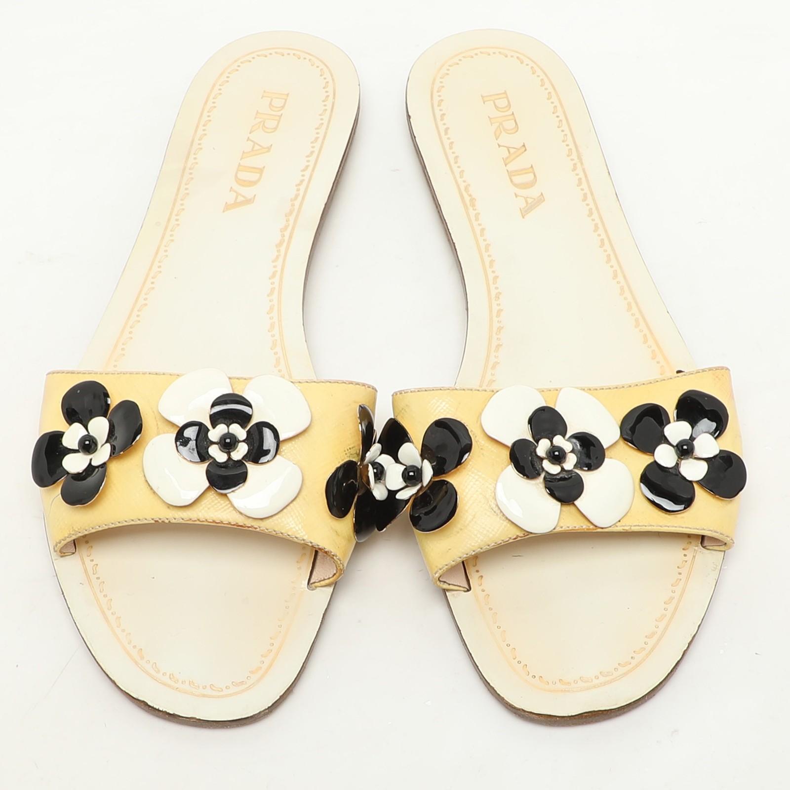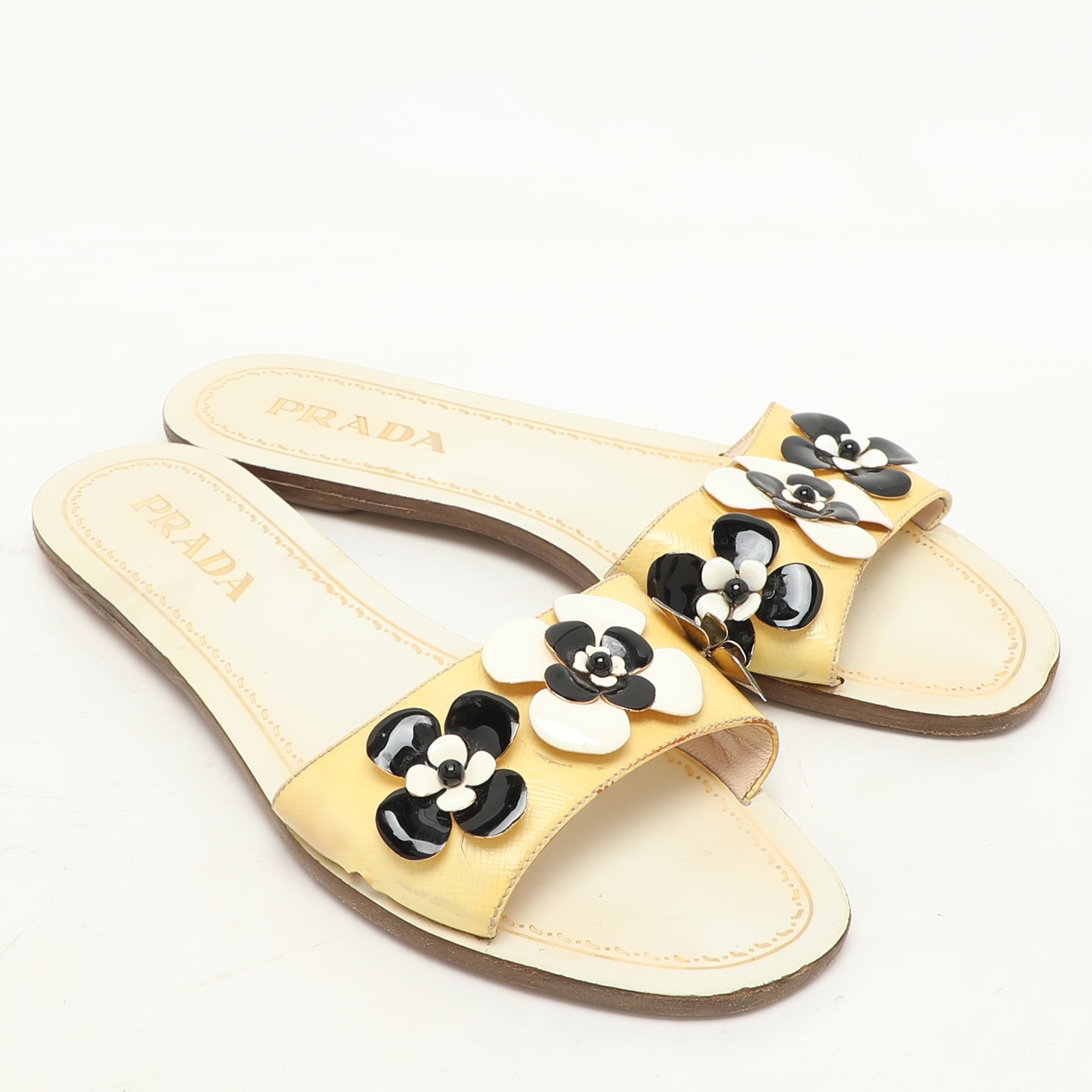 These Prada flats shine in cream Saffiano patent leather with subtle embellishments at the toe. Sleek and feminine, they’re an elegant finish to any ensemble.Certified by The Luxury Closet - This item has gone through a detailed authentication process overseen by our experts. We offer a lifetime guarantee of authenticity on all our items. Import duties, taxes and charges are not included in the item price. These charges are the buyers responsibility. Please check with your country’s customs office to determine what these additional cost will be prior to buying. Our eBay Store About Us Contact Us Add to Favorite Sellers Prada Cream Patent Saffiano Leather Embellished Flats Size 36 $165 These Prada flats shine in cream Saffiano patent leather with subtle embellishments at the toe. Sleek and feminine, they’re an elegant finish to any ensemble. Product Details Brand Color Cream Dimensions Material Patent Leather Size 36 Outsole Width Outsole Length Heel Height Includes Certified by The Luxury Closet This item has gone through a detailed authentication process overseen by our experts. We offer a lifetime guarantee of authenticity on all our items. How We Check The in-house team of experts at The Luxury Closet is highly trained to verify the authenticity and the condition of the luxury products. They ensure that only 100% authentic items are put on sale.The evaluation process is unique with its own mix of assessment criteria and differs according to the category. Each item is evaluated based on the following combination of hallmarks, hardware, stitching, symmetry, material, craftsmanship, stamping, codes, hologram stickers, and packaging. Our authenticators also check if the items have been modified or amended (e.g., aftermarket diamonds, replaced batteries, repaired bags, etc.) International Buyers Import duties, taxes and charges are not included in the item price. These charges are the buyers responsibility. Please check with your country’s customs office to determine what these additional cost will be prior to buying.