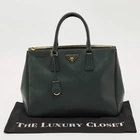 Our eBay Store About Us Contact Us Add to Favorite Sellers Prada Dark Green Saffiano Lux Leather Large Galleria Double Zip Tote Sleek, structured, and iconic, this dark green Prada tote in Saffiano leather offers dual zip compartments and a timeless silhouette. It’s the ultimate everyday luxury bag with enduring appeal. Product Details Brand Prada Includes The Luxury Closet Packaging Certified by The Luxury Closet This item has gone through a detailed authentication process overseen by our experts. We offer a lifetime guarantee of authenticity on all our items. How We Check The in-house team of experts at The Luxury Closet is highly trained to verify the authenticity and the condition of the luxury products. They ensure that only 100% authentic items are put on sale.The evaluation process is unique with its own mix of assessment criteria and differs according to the category. Each item is evaluated based on the following combination of hallmarks, hardware, stitching, symmetry, material, craftsmanship, stamping, codes, hologram stickers, and packaging. Our authenticators also check if the items have been modified or amended (e.g., aftermarket diamonds, replaced batteries, repaired bags, etc.) Please note that this handbag may have a perfume scent, as it was stored and packaged in Dubai where such fragrances are commonly used. International Buyers Import duties, taxes and charges are not included in the item price. These charges are the buyers responsibility. Please check with your country’s customs office to determine what these additional cost will be prior to buying.