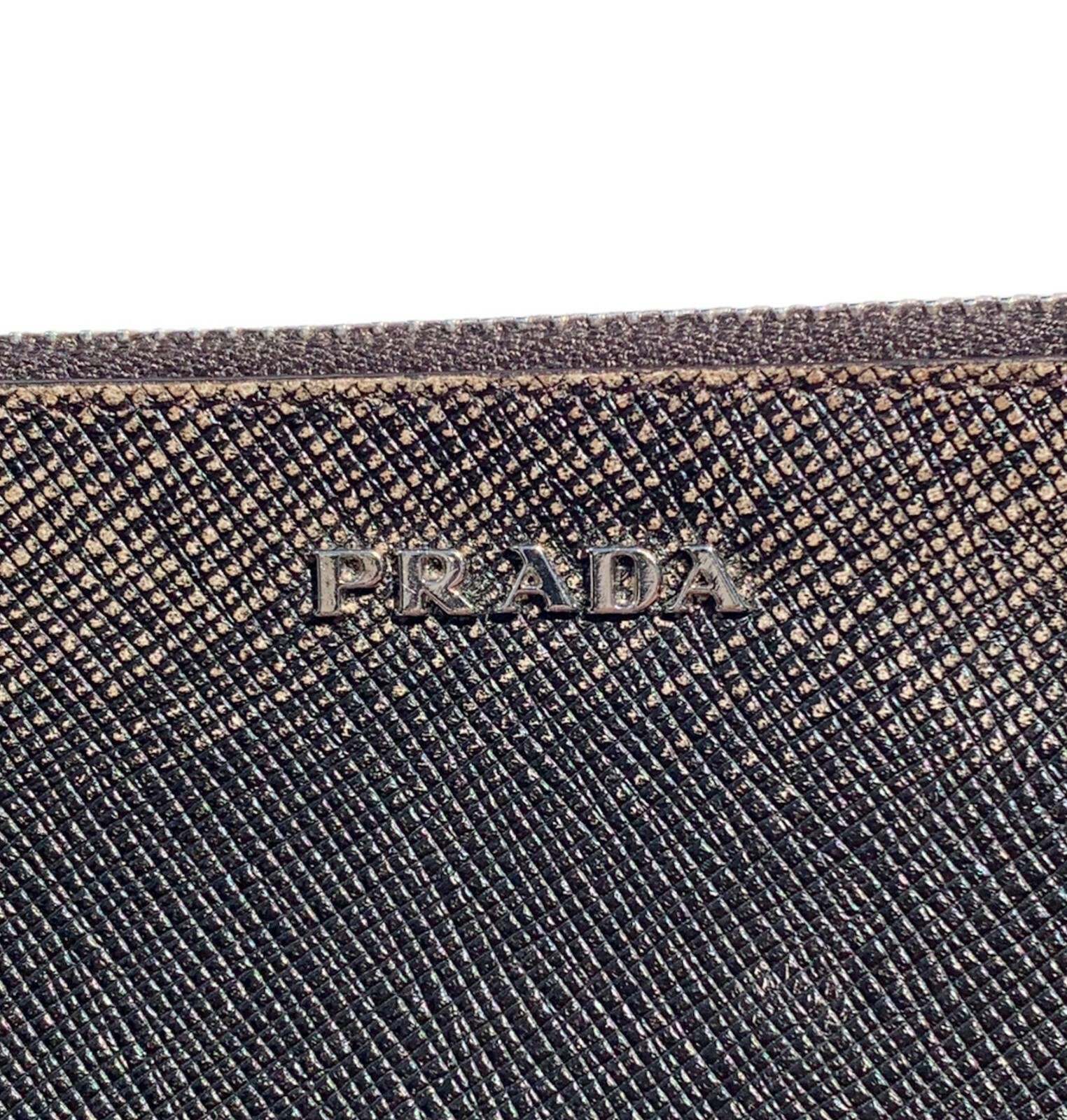 Designer: Prada Product: Distressed Saffiano Leather Chain Wallet Size: 6 Inches x 3.5 Inches Color: Black/Grey Distressed Saffiano Leather Condition: Like New Condition with Dustbag Retail Price: $750 Measurements: 6 Inches x 3.5 Inches *All prices are negotiable. No trades. *Everything is guaranteed 100% authentic. *No Returns. All items have detailed measurements to ensure a proper fit. Please review all listing details before making a purchase. *Please allow 1-3 days for your purchases to be shipped. *Items will be shipped with tracking and signature confirmation if over $750.