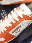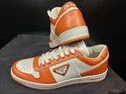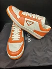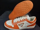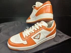 PRADA DOWNTOWN LEATHER SNEAKERS. Product code: 2EE364 Metal eyelets and cotton laces Enamel triangle on the upper Prada Milano logo printed on the tongue Lightweight box sole with embossed logo on the side 35 mm sole Removable leather-covered insole.