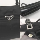 Prada Handbag Nylon Triangle Logo White Tag Black