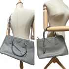PRADA handbag, shoulder bag, hand bag, cross body bag, 2way with silver hardware, multi-layer type, multi-functional, multi-storage, for going out, womens bag with a white tag and triangle logo. Size: Height 7.87 inches, Width 11.81 inches, Depth 5.51 inches, Handle height 4.72 inches, Shoulder length 50.39 inches. Condition: AA - Minimal signs of use, a very good condition as a used item. Color: Gray. Material: Saffiano leather. Accessories: None. I promise fast shipping via FedEx or DHL as soon as possible! Import duties, taxes and charges are not included in the item price or shipping charges. These charges are the buyer’s responsibility. These charges are normally collected by the delivering freight (shipping) company or when you pick the item up - do not confuse them for additional shipping charges.