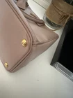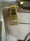 Prada Galleria Saffiano Leather Handbag Large. Three large compartments, three pockets and a small compartment with zip in the middle of compartment. Golden hardwares. Removable and adjustable should strap. Condition: used quite good condition. Indicates slight worn on corners. Cracks on the trim. Few marks on the leather interior. Please see the details. Measurement: W33, H24, D16 approximately No dust bag