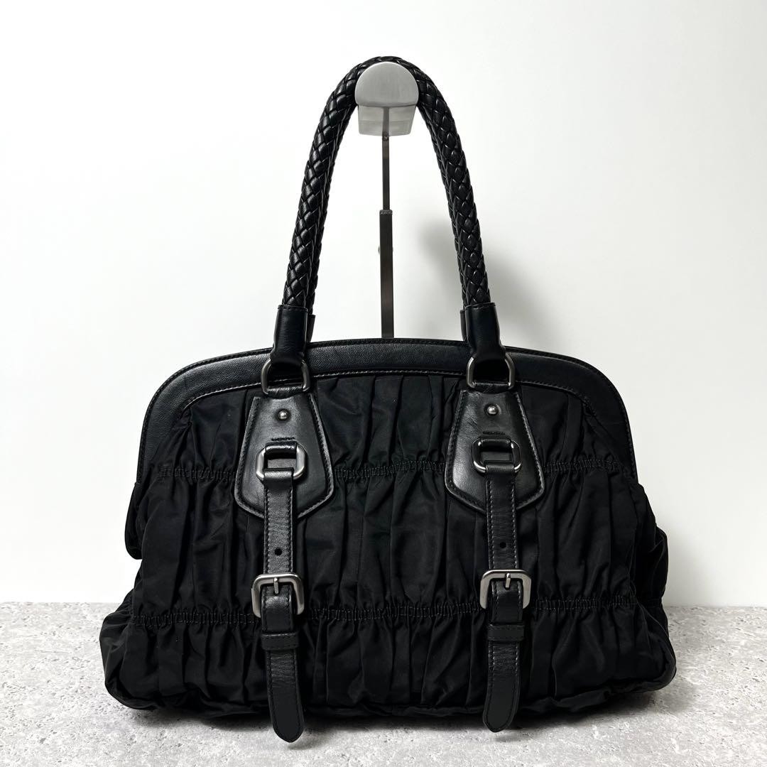Prada Gathered Tote Bag Triangle Logo Nylon Leather Key Features - Brand: PRADA - Product Type: Tote Bag / Handbag - Model: Triangular Logo Design - Material: Nylon and Leather - Color: Black - Features: Elegant woven leather handles, metal logo plate on front, sophisticated design suitable for daily or formal use - Condition: Excellent overall; no noticeable scratches or stains, well-maintained interior, minimal wear on handles - Size: Height 25cm, Width 33cm, Depth 10cm, Handle 19cm Item Specifics: - Brand: PRADA - Model: Triangular Logo - Material: Nylon, Leather - Color: Black - Style: Tote Bag / Handbag - Main Color: Black - Gender: Female - Country/Region of Manufacture: Japan Specifications Brand Prada Country Japan Product Description Description Thank you for your interest. This item is not new, but a used item that was given away. Please check the photos for the condition of the item. Please understand that the condition of the item is subjective and the standard of evaluation and feeling may vary from person to person, so please be aware that this is a used item before bidding. Please check the photos for the condition of the item, such as scratches and stains. To prevent problems, please feel free to contact us if you have any questions about the size or other details of the item. We will be happy to adjust the price. We will do our best to ship your order as soon as possible. We will do our best to ship as soon as possible, but there may be delays during the busy harvest season. Remarks All the products we sell are obtained and sold by pawn shops that are authorized brands, so all the products we handle have been authenticated to meet our strict standards for authenticity, so please buy with confidence. Payment Supports managed payments Please pay within 5 days after auction is finished. About Us We are located in Japan. It's our pleasure to make you happy by proposing our recommend item. If you have any questions or request about items, please feel free to ask us. International Buyers - Please Note: -Importduties, taxes, and charges are not included in the item price or shipping charges. These charges are the buyer's responsibility. -Please check with your country's customs office to determine what these additional costs will be prior to bidding/buying. -These charges are normally collected by the delivering freight (shipping) company or when you pick the item up - do not confuse them for additional shipping charges. -We do not mark merchandise values below value or mark items as - gifts - The US and International government regulations prohibit such behavior. Thank you for your understanding
