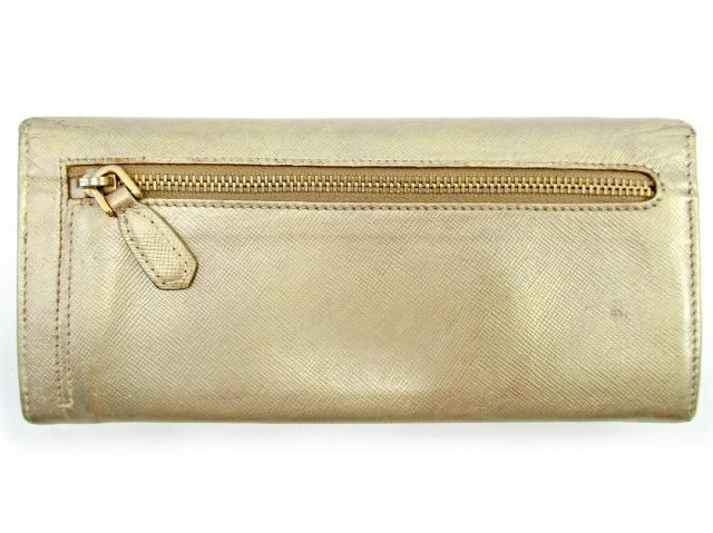 Prada Gold Leather Zipper Long Wallet with Storage Compartment