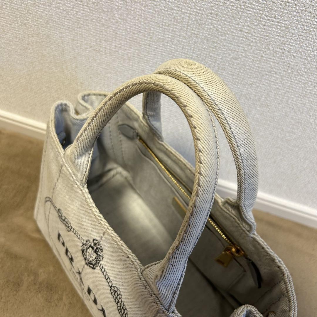 Prada Denim Tote Bag Grey Bianco Canapa Key Features Prada Canvas Tote Bag in White. This stylish tote features the iconic Prada logo on durable canvas material. The bag is in good condition with some minor wear: slight corner scuffs and discoloration on the handles. It includes a shoulder strap (unused) and a storage pouch. The interior is clean, having been used with a bag-in-bag. Overall, a well-maintained accessory suitable for everyday use. Item Specifics: - Brand: Prada - Style: Tote Bag - Material: Canvas - Color: White - Size: Small (S) - Includes: Shoulder Strap, Storage Pouch Specifications Brand Prada Country Japan Product Description Description Thank you for your interest. This item is not new, but a used item that was given away. Please check the photos for the condition of the item. Please understand that the condition of the item is subjective and the standard of evaluation and feeling may vary from person to person, so please be aware that this is a used item before bidding. Please check the photos for the condition of the item, such as scratches and stains. To prevent problems, please feel free to contact us if you have any questions about the size or other details of the item. We will be happy to adjust the price. We will do our best to ship your order as soon as possible. We will do our best to ship as soon as possible, but there may be delays during the busy harvest season. Remarks All the products we sell are obtained and sold by pawn shops that are authorized brands, so all the products we handle have been authenticated to meet our strict standards for authenticity, so please buy with confidence. Payment Supports managed payments Please pay within 5 days after auction is finished. About Us We are located in Japan. It's our pleasure to make you happy by proposing our recommend item. If you have any questions or request about items, please feel free to ask us. International Buyers - Please Note: -Importduties, taxes, and charges are not included in the item price or shipping charges. These charges are the buyer's responsibility. -Please check with your country's customs office to determine what these additional costs will be prior to bidding/buying. -These charges are normally collected by the delivering freight (shipping) company or when you pick the item up - do not confuse them for additional shipping charges. -We do not mark merchandise values below value or mark items as - gifts - The US and International government regulations prohibit such behavior. Thank you for your understanding