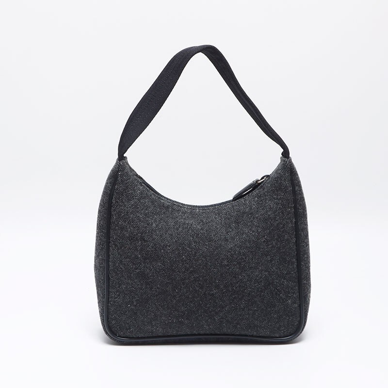 This Prada wool hobo bag is a sleek and stylish choice! The gray color is versatile, and the compact size makes it perfect for everyday use. The quality is amazing—soft yet durable wool with minimal wear. The handle height is comfortable, and the overall design feels both sporty and chic. A great pre-owned find for any Prada lover!