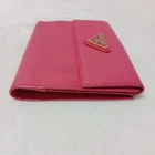 Absolutely love this compact wallet! The pink leather is gorgeous and feels so luxurious. Perfect size for essentials without being bulky. The triangle logo adds that classic Prada elegance. Highly recommend!