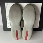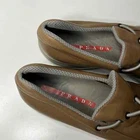 PRADA 0135 Calzature Donna Taupe Leather Nappa in Pelle Sport Mocs Shoes Sneakers~NAUTICAL Prada Sailing Yacht Racing Description * Leather upper with leather lining * Rubber sole * 1" heel * Slip on with drawstring closure * Made in Italy * Genty Worn Excellent good condition !!!