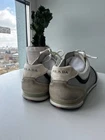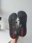 Elevate your style with these Prada leather suede sneakers, a blend of luxury and comfort that will complement any ensemble. These size US 9 / EU 42 shoes feature the iconic tab logo, embodying the quality and craftsmanship Prada is known for. With a versatile gray color, they are perfect for a variety of occasions, from casual outings to more formal events. Designed for the modern man, these sneakers are a vintage addition to your collection, made with an upper and lining material of premium leather. The durable leather outsole ensures longevity, while the canvas fabric type adds a touch of classic charm. Suitable for all seasons, these Prada sneakers are a testament to timeless fashion and functionality.